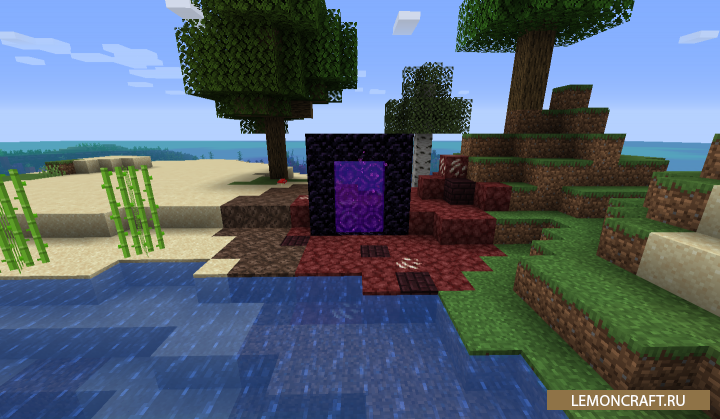 Мод на порталы в ад Nether Portal Spread позволит получить спавн в обычном мире порталы в ад. Данные порталы будут спавниться в случайной последовательности во всех биомах. Кроме этого все блоки, окружающие портал, трансформируются в блоки из ада. В настройках мода вы можете изменить радиус замены блоков, частоту спавна порталов и несколько других фишек.