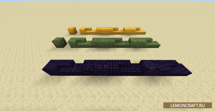 Мод на ванильные декоративные блоки Beholder's Variations добавляет в игру несколько вариантов декоративных блоков, текстура которых была взята с ванильных вариантов. В игру будут добавлены различные варианты красного песка, песка душ, призмарина, алмазного и изумрудного блоков. Данные блоки никак не нарушат общую стилистику игры и отлично подойдут для украшения.